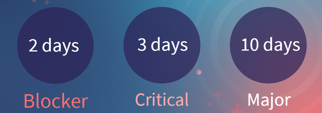 Une fois que l’équipe de la R&D dispose de plus d’information, elle fixe un délai de réponse en fonction de l’état actuel du ticket.