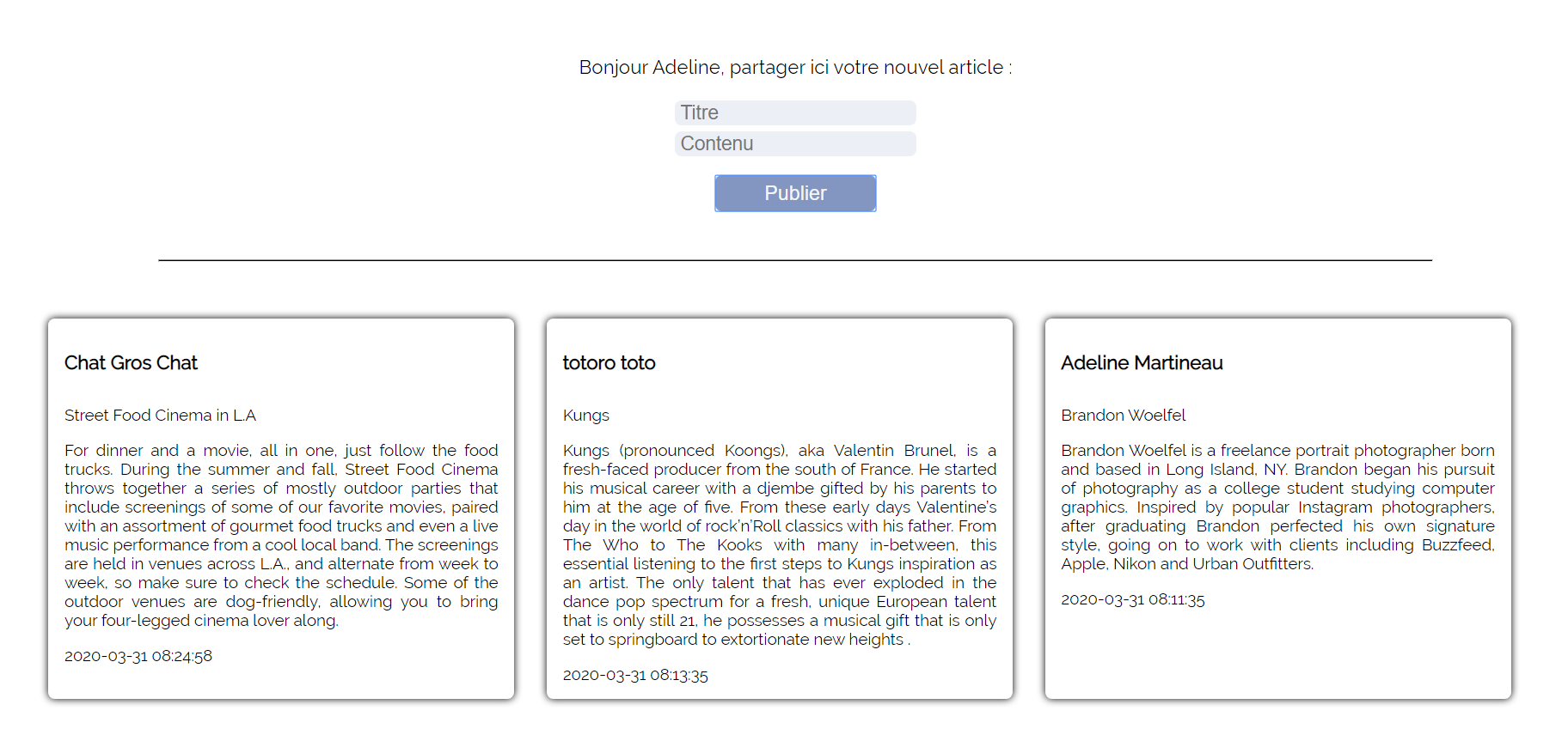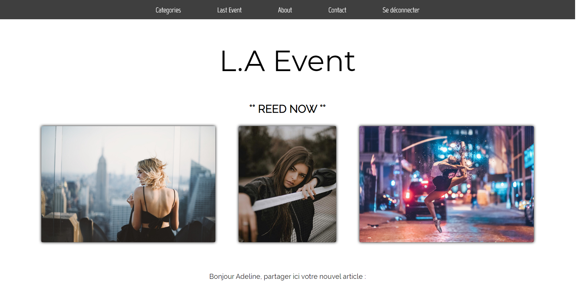 L.A event anciennement Artists fait partie de mes tout premiers projets il y a maintenant 2 ans. C'est un mini blog fictif censé regrouper diverses actualités du monde artistique américain. L'objectif était d'acquérir les fondamentaux de PHP : Réalisation de formulaire d'inscription et de connexion et publication d'article.